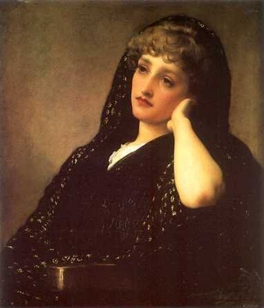 shape, with long crape veil hanging at the back; besides this veil, a