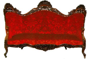 The sofas and ordinary chairs are covered with satin damask,